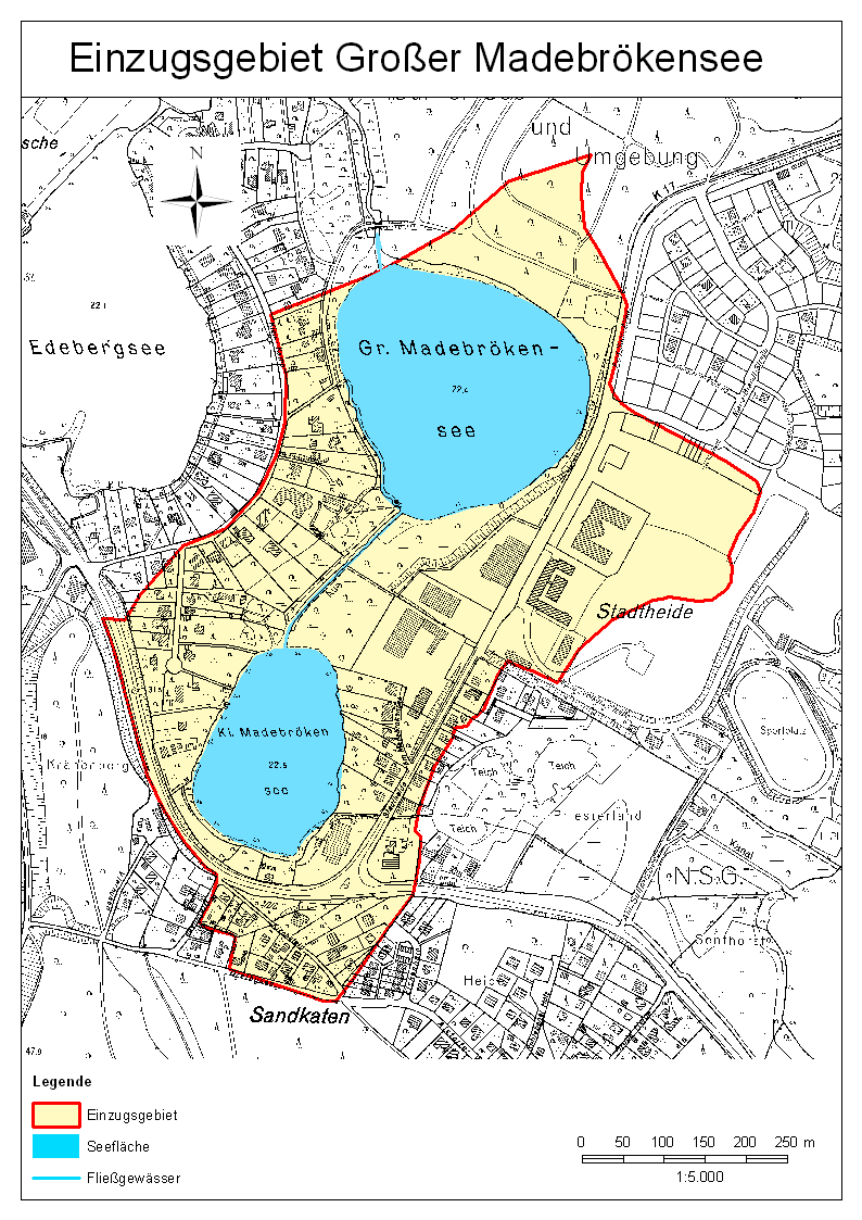 Der Große Madebrökensee ist städtisch geprägt, d.h. dass er im Gegensatz zu vielen Gewässern der Region den Einflüssen der Landwirtschaft kaum unterliegt. Das direkte Umfeld ist durch Bruchwald sowie durch Wohnbauflächen (Kieler Kamp, Stadtheide) geprägt. Der Wasserstand des Sees wurde 1922 um 30 cm an der Ölmühle abgesenkt. Der Große Madebröckensee gehört zum Naturschutzgebiet "Suhrer See und Umgebung".