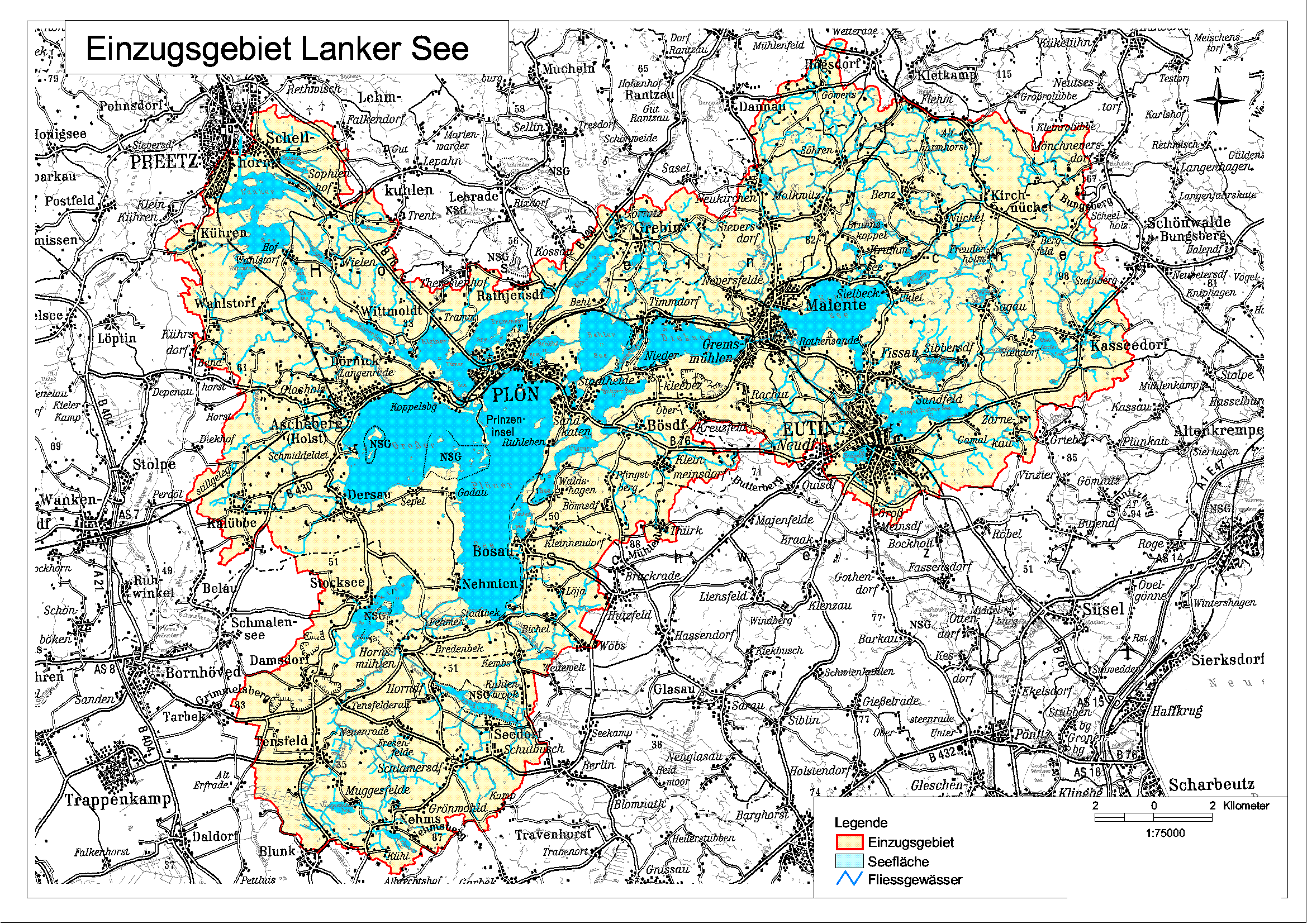 Einleitung aus Kläranlage: | KA Camping Lanker See, EW 130, 3. Reinigungsstufe, Direkteinleitung . KTA Wahlstorf Hof, EW 94, 2. Reinigungsstufe, 100 m vor dem See |