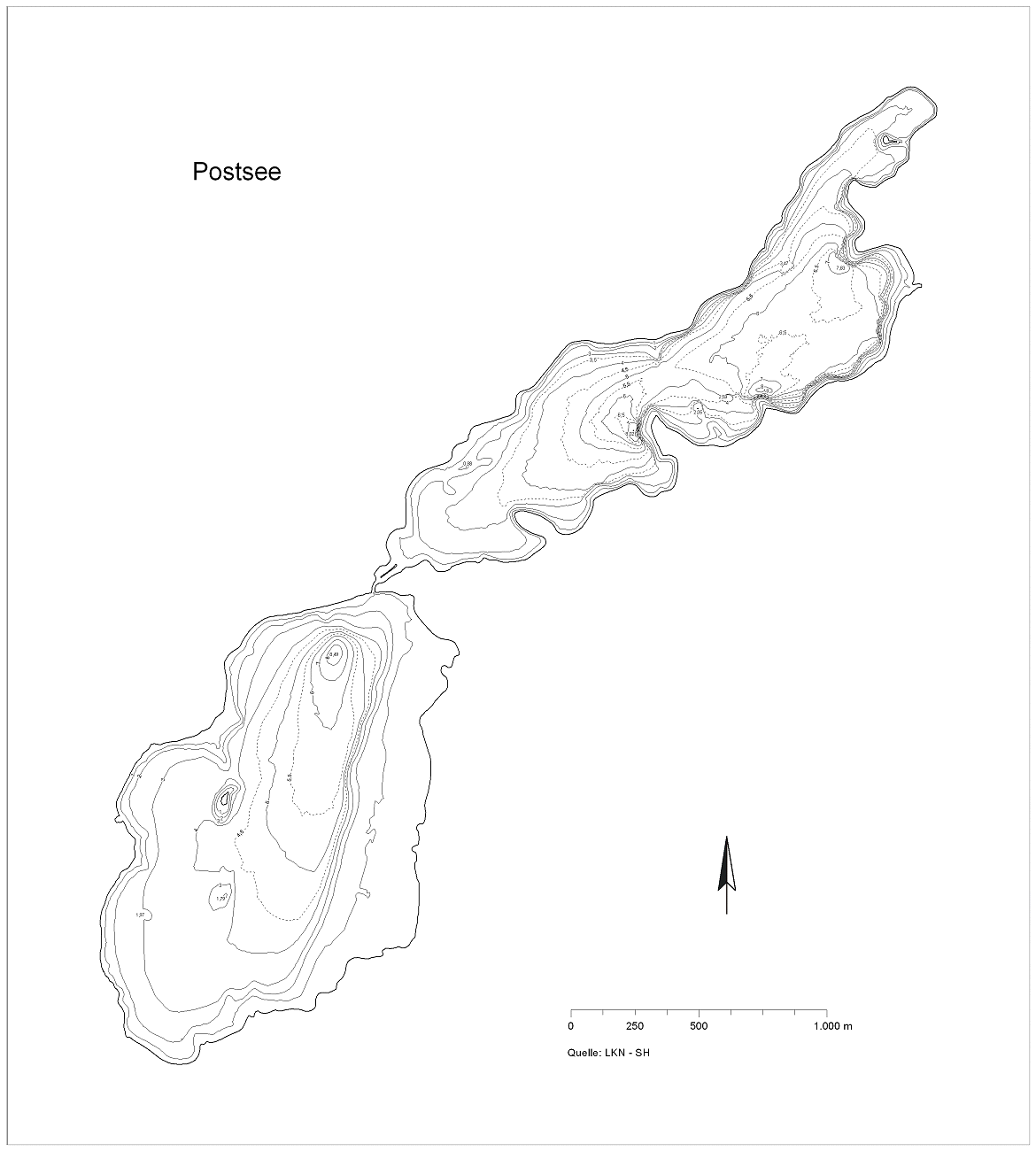 Dieser Flachsee weist eine starke Ausrandung seines Ufers auf (vgl. hohe Uferentwicklung). Der Wasserstand wurde 1923 durch Ablösung des Mühlenstaus sowie 1938 durch Vertiefung der Brückensohle um insgesamt 85 cm abgesenkt. Durch die Absenkung des Wasserstandes gehören zum Teil große Uferflächen zur Seeparzelle. Über die Landenge zwischen den beiden Seeteilen führte früher eine Kleinbahntrasse. Beide Seeteile werden von der Alten Schwentine druchflossen. Das Einzugsgebiet zeichnet sich durch überwiegend sandige Böden aus und wird hauptsächlich ackerbaulich genutzt. Der Südteil des Postsees ist als Brut-, Mauser- und Rastgebiet von ornithologischer Bedeutung.