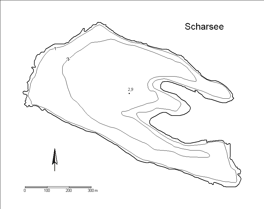 Der Scharsee ist ein typisches Flachgewässer mit abgesenktem Wasserspiegel. Die Absenkung erfolgte 1930/32 um 50 cm durch Ausbau der Schellhorner Au. In Jahren mit überwiegend Grundsicht konnten sich Wasserpflanzenbestände ausbreiten, während sich in den übrigen Jahren Planktonalgen als Nährstoffkonkurrenten durchsetzen konnten (Bistabilität). Ein die gesamte Fischfauna betreffendes Fischsterben hat sich 1986 ereignet. Auf der gabelförmigen Halbinsel des Scharsees befand sich eine auf das 10. Jahrhundert zu datierende großräumig angelegte typisch slawische Niederungsburg. Verschiedene Bereiche dieser Halbinsel stehen deshalb seit 1968 unter Denkmalschutz.