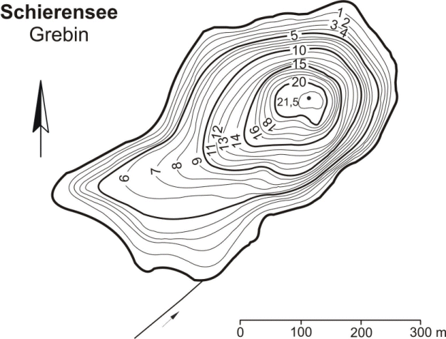 Der Schierensee ist ein stabil geschichtetes Gewässer mit niedrigen Tiefentemperaturen. Er besitzt ein relativ kleines Einzugsgebiet.