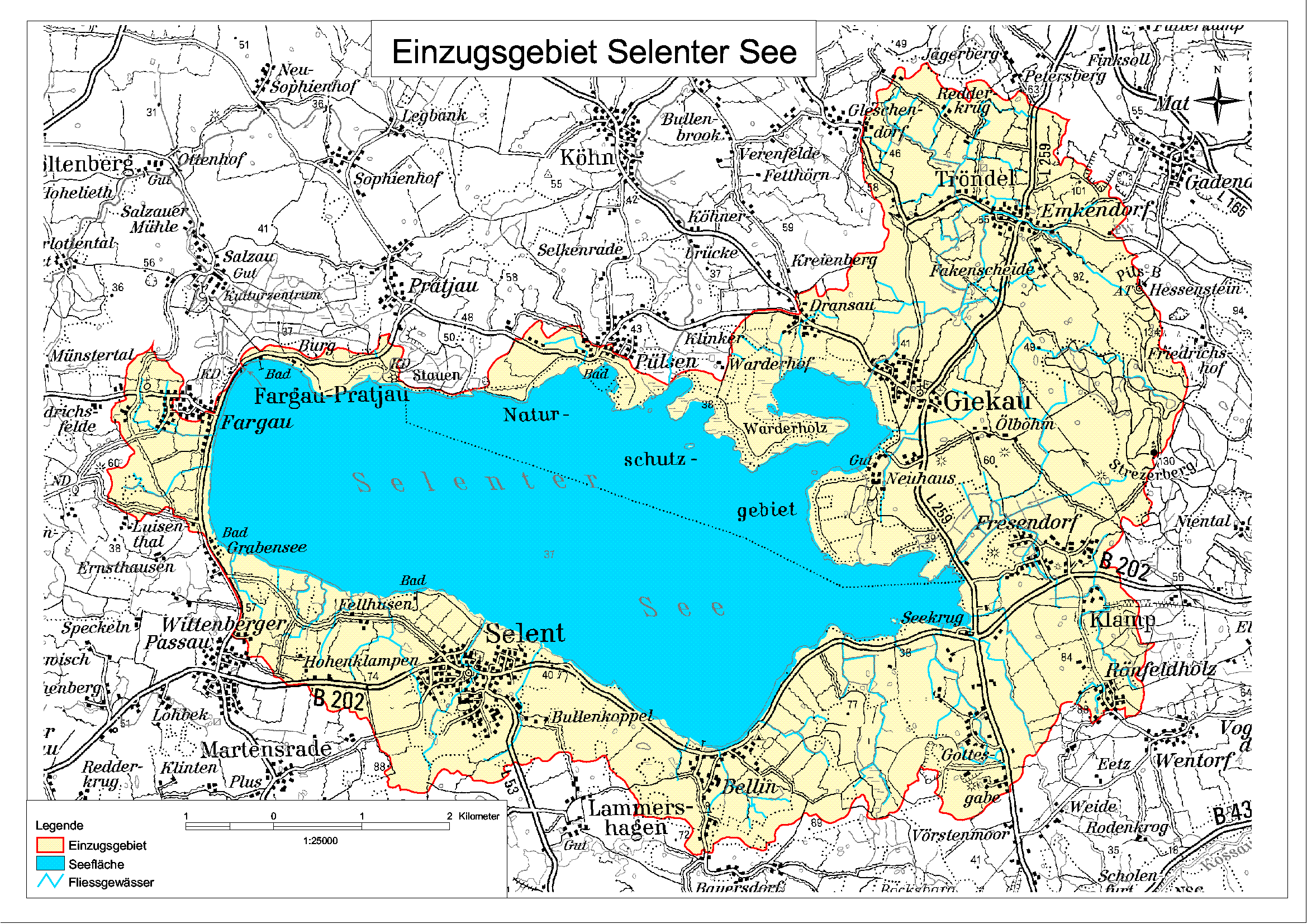 Der Selenter See ist der zweitgrößte See in Schleswig-Holstein und der zweitgrößte des Kreises Plön. Er besitzt ein asymetrisches relativ kleines Einzugsgebiet, dass überwiegend landwirtschaftlich genutzt wird. Neben den Zuflüssen ist der unterirdische Grundwasserzufluss von großer Bedeutung für die Wassermenge und -qualität. Der Selenter See weist als eine Besonderheit zwei Abflüsse auf. Die Mühlenau stellt hierbei einen natürlichen Abfluss dar, während die Salzau/Hagener Au durch einen künstlichen Durchstich bei Fargau vom Selenter See gespeist wird. Hier befindet sich auch ein Stauwehr, dass der Regulierung des Wasserabflusses dient. Der Abfluss durch die Mühlenau ist dagegen unreguliert, wird aber durch ein Aalwehr bei Pülsen - je nach Wartung und Betrieb - mehr oder weniger behindert. Zur gezielten Wasserbewirtschaftung wurden im Auftrag des Kreises Plön zwischen 1993 und 1996 Niederschlags- und Abflussuntersuchungen durchgeführt. Der Selenter See zeichnet sich mit Ausnahme der Giekauer Bucht gegenüber den meisten anderen beobachteten Gewässern durch eine sehr geringe Nährstoffbelastung aus. Zudem ist er einer der wenigen Seen der Region, die als mesotroph eingestuft werden können. Aufgrund seiner hohen Windexposition ist der Selenter See trotz seiner großen Tiefe zumeist nicht stabil geschichtet und weist somit relativ warmes Tiefenwasser auf. Der Nordteil des Selenter Sees und seine Umgebung stehen seit 1978 unter Naturschutz und stellen mit einer Fläche von mehr als 705 ha das größte zusammenhängende Naturschutzgebiet des Kreises Plön dar. Der Uferbereich ist hier durch eine Röhrichtzone geprägt und wird streckenweise von ausgedehnten Erlenbruchwäldern eingefasst. Auch durch die umfangreichen Verlandungszonen dient es verschiedenen und teils seltenen Wasservogelarten als Brut-, Mauser- und Rastbiotop und ist dadurch eines der ornithologisch bedeutendsten Gewässer in Schleswig-Holstein. Zudem existieren auch außerhalb der festgesetzten Grenze des Naturschutzgebietes sowie am Südufer einige in diesem Zusammenhang bedeutsame Zonen. Der gesamte See mitsamt seinen naturnahen Uferbereichen ist FFH- und EU-Vogelschutzgebiet.