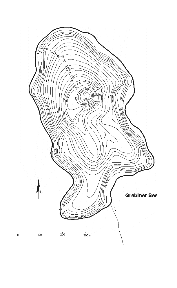 Der Grebiner See ist ein stabil geschichteter See mit niedrigen Tiefenwassertemperaturen. An diesem Gewässer wurden zum ersten Mal die Bedeutung der `intensiv bewirtschafteten´ Ackerfelder im Einzugsgebiet und mögliche Auswirkungen unter Berücksichtigung von Schwemm-, Drain- und Niederschlagswasser auf den See wissenschaftlich untersucht. Dieses Forschungsprojekt wurde von Prof. Dr. W. Ohle, Max-Planck-Instituts für Limnologie in Plön, durchgeführt. Die Ergebnisse wurden 1974 unter dem Titel "Seentherapie - ein Kapitel des Umweltschutzes" veröffentlicht (in: Umweltschutz an Nord- und Ostsee. Flensburger Hochschultage 1973: 97-118). In Folge der Untersuchungen über die Ursachen der "rasanten Seeneutrophierung" wurden zur Abschwächung und zur Steuerung der Eutrophierungsprozesse im Grebiner See auch "Therapeutica" im Sinne einer Seen-Therapie zum Einsatz wie hypolimnische Belüftung, die Bentonit- sowie die Aluminiumsulfat-Therapie angesetzt. Nach Ohles Messungen lag die 1% Lichtgrenze vor Beginn dieser Maßnahmen am 28. Juni 1971 bei 5,6 m und rückte ein Jahr danach, am 26. Juni 1972, auf 11,5 m herab. Die 1% Lichtgrenze liegt ungefähr 2,5 mal tiefer als die Sichttiefe, in der noch 5% der auf die Wasseroberfläche einfallenden Lichtenergie zu messen sind. Umgerechnet lagen die Sichttiefen also im Juni in den Jahren vor resp. nach Ohles Sanierung bei ungefähr 2,2 resp. 4,6 m. Im Rahmen des Seen-Beobachtungsprogramms konnten im Jahre 1991 ausschließlich in der ersten Saison Ende Juni bis Ende September (27.-39. KW) Sichttiefen von maximal 4,1m festgestellt werden. Im Laufe der folgenden zwei Jahrzehnte nahmen diese kontinuierlich ab. In den oben genannten Wochen des Jahres 2013 wurden nur noch Sichttiefen zwischen 1m und 1,5 m festgestellt, wobei der letztere Wert die aktuelle maximale erfasste Sichttiefe des Grebiner Sees darstellt.